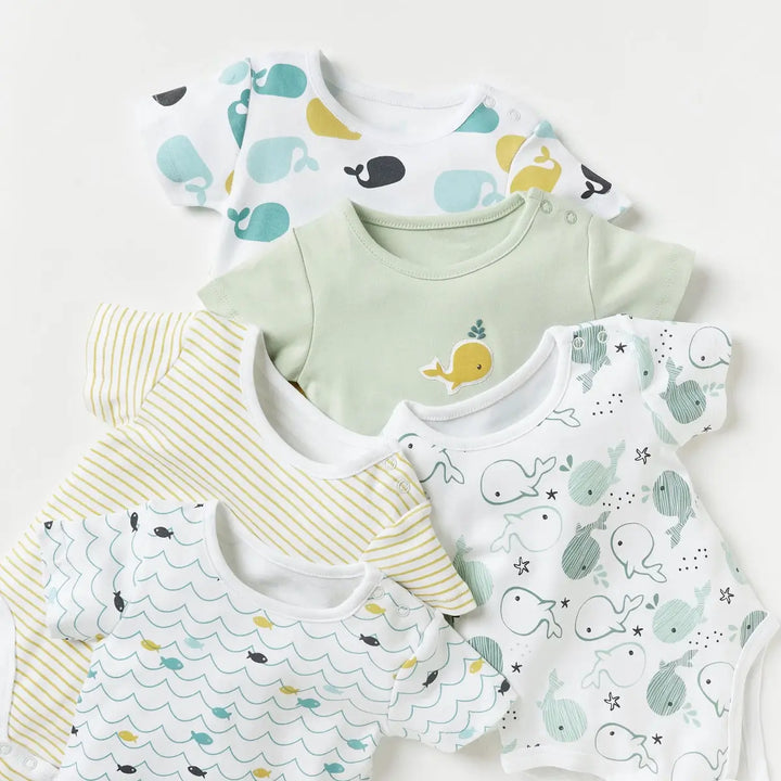 بدلة أطفال مطبوعة بأكمام قصيرة - طقم من 5 قطع
