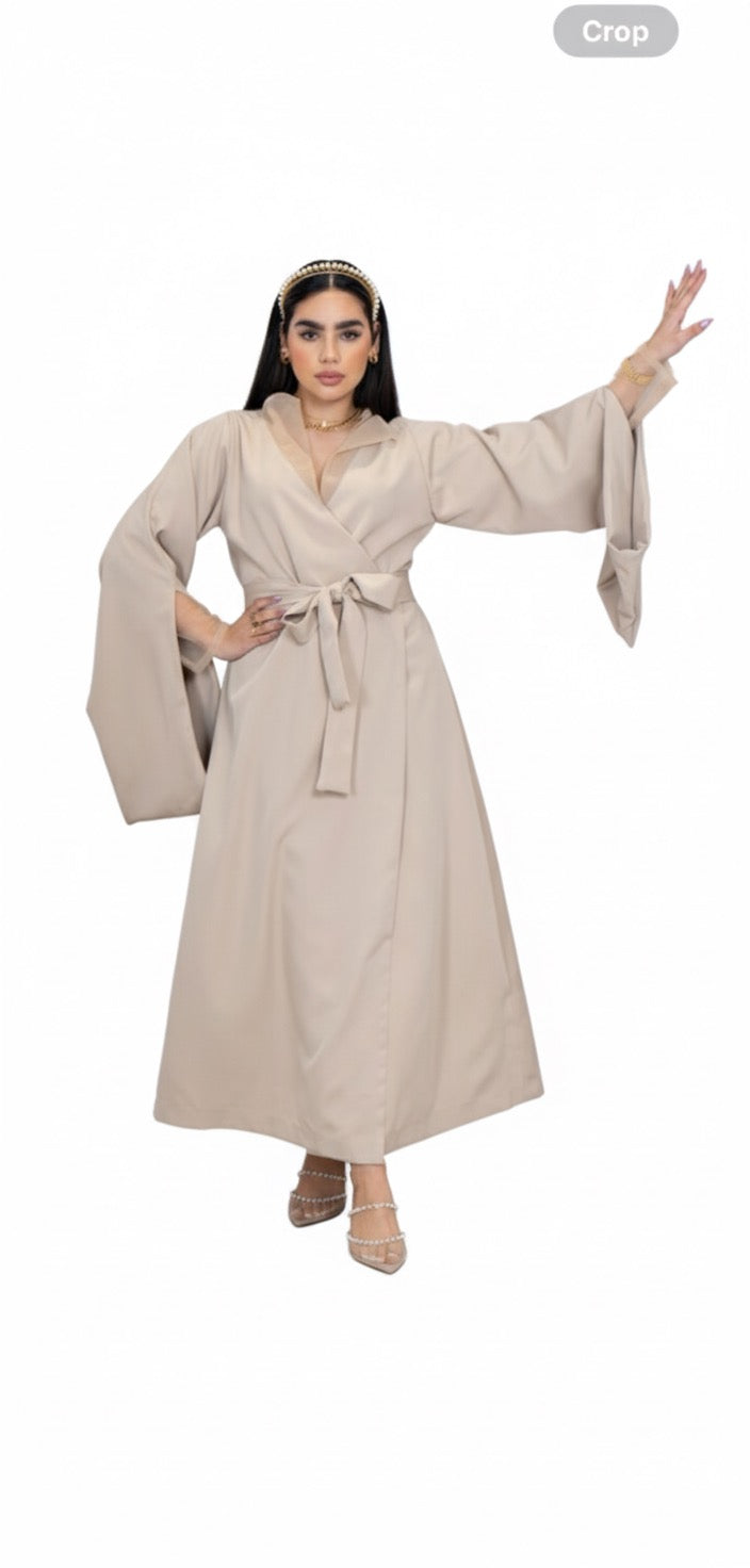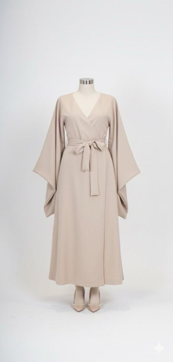 دراعة فري سايز بتصميم لف يمنحك إطلالة عصرية ومريحة. تتميز بأكمام واسعة وقصة أنيقة تبرز جمال التصميم. مثالية للمناسبات  المختلفة لإضفاء لمسة من الرقي والأناقة على اطلابتك .