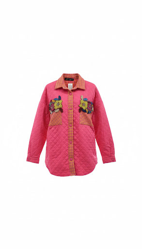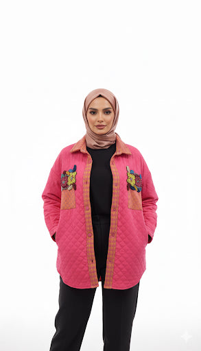 قميص مبطن بلون وردي مع جيبين مطرزين، بأكمام طويلة ومقاس واحد فري سايز